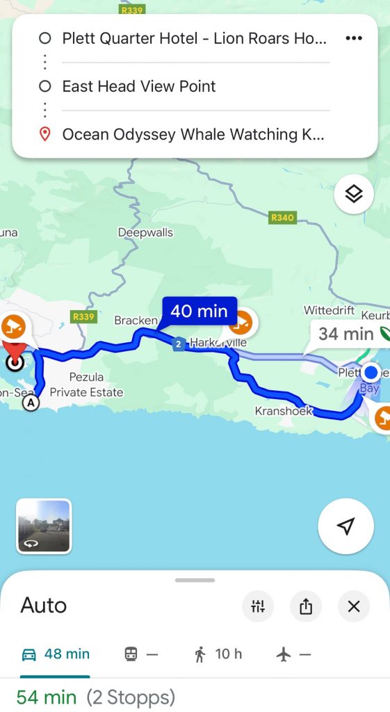 Nach einem gemütlichen Frühstück machen wir uns langsam auf dem Weg nach Knysna, zuerst zum Aussichtspunkt am Rande der Lagune „The Head“.