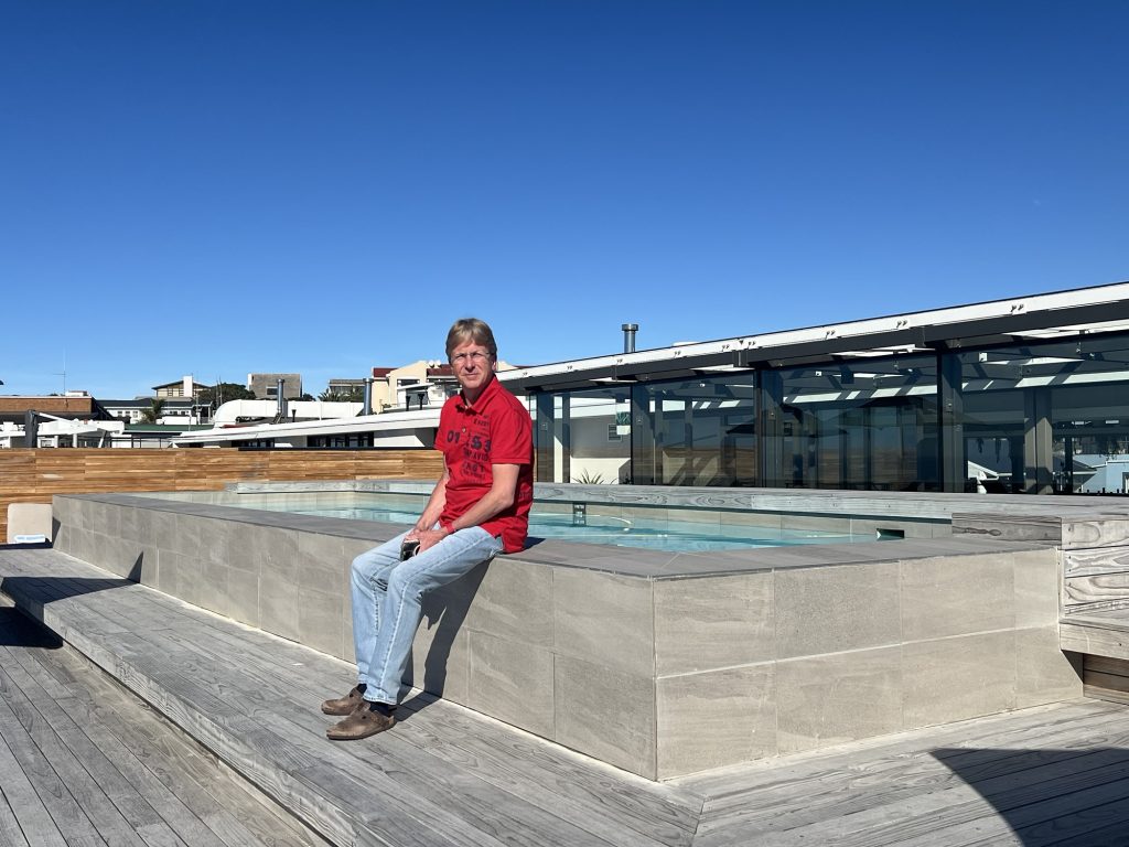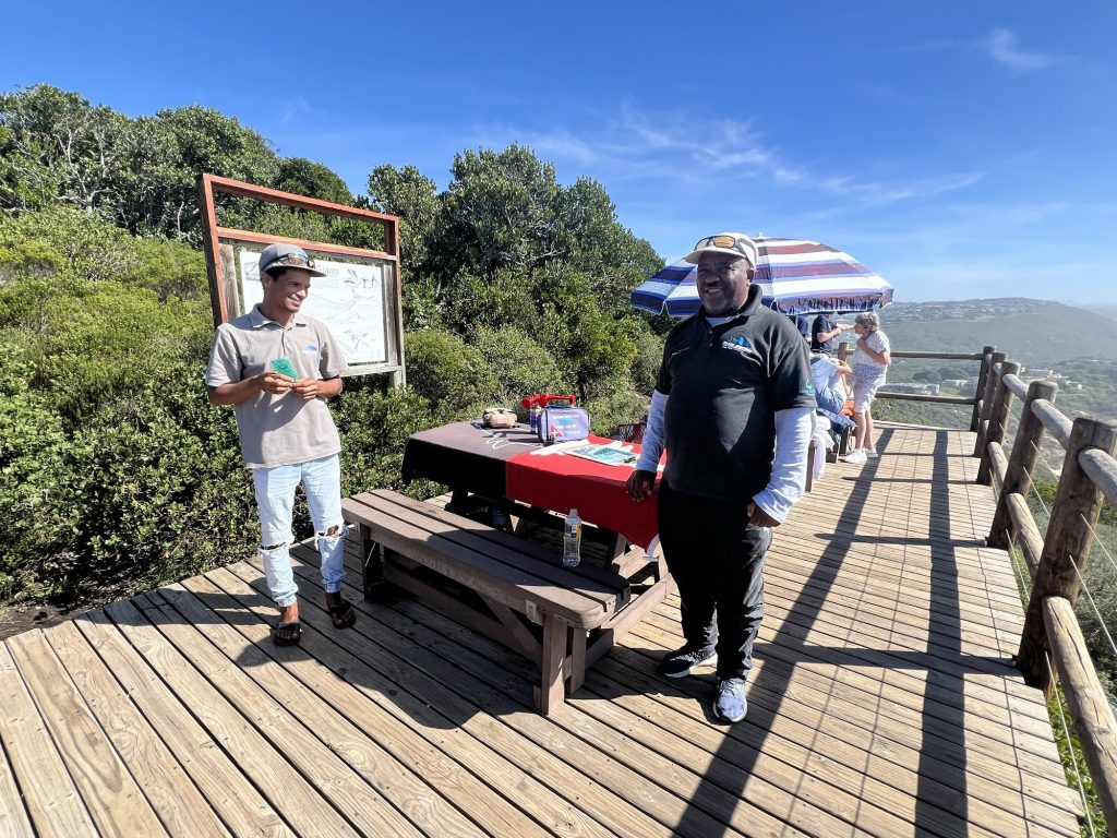 Und das ist wirklich etwas, was es hier an der gesamten Küste am Indischen Ozean gibt – Shark 🦈 Spotter! Wir kommen ins Gespräch und er erzählt uns, dass er heute Morgen erst einen 1,5m langen Hai gesichtet hat, der aber ungefährlich ist, da er nicht angreift. Es wäre aber die Zeit für den weißen Hai, der jetzt jederzeit erwartet wird und sehr aggressiv ist.