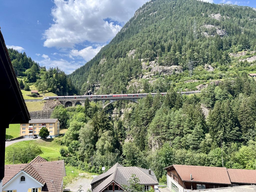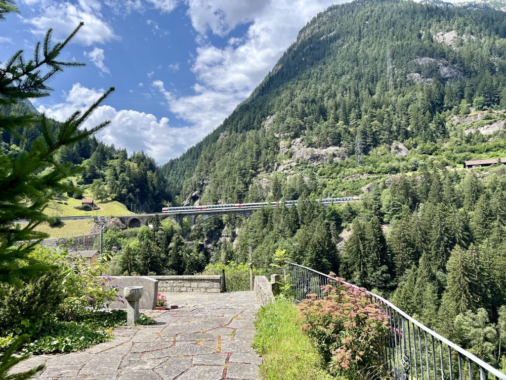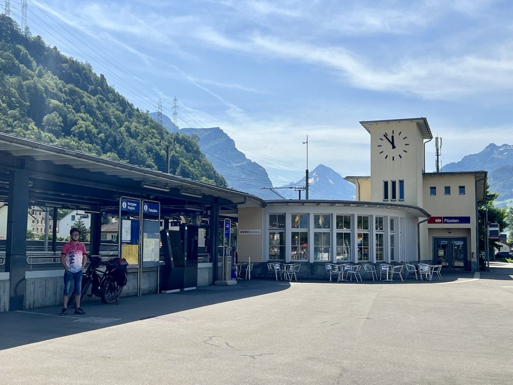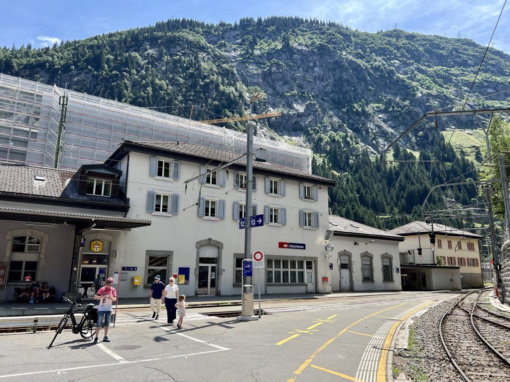 Wir fahren bis Göschenen und dort geht erstmal das Rätselraten los – wo war Thomas vor ca. 30 Jahren mit Papa zum Züge gucken 👀???