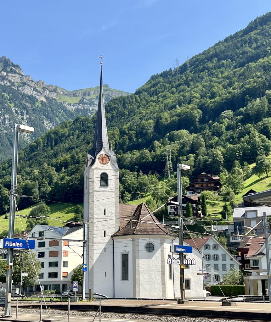 In Wassen finden wir dann DIE Kirche ⛪️ von der man rundherum einen guten Blick auf die Kehrtunnelstrecke zum Gotthard hat.