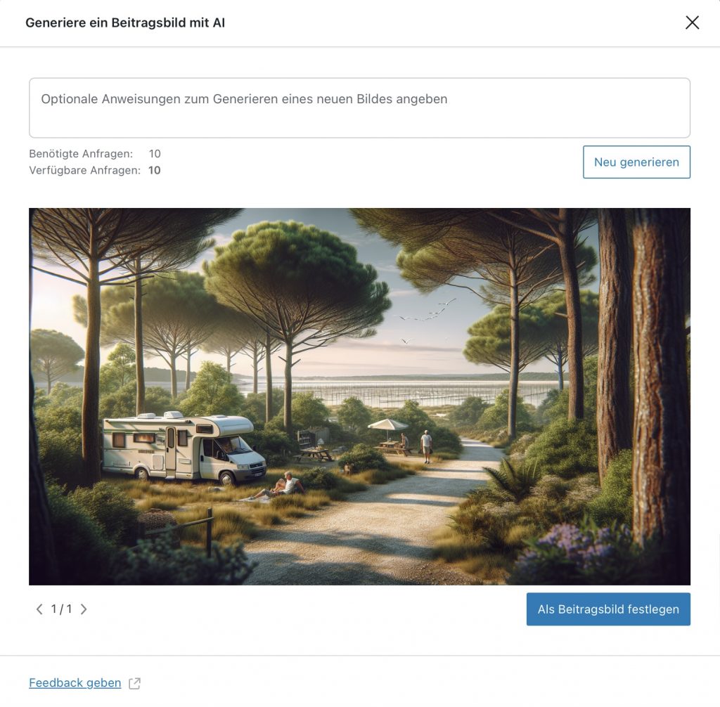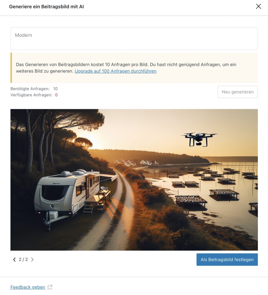 Ich hatte mal wieder ein wenig Zeit mit WordPress rumzuspielen und habe für diesen Blogbeitrag mit KI einfach mal Titelbilder generiere lassen. Einmal ohne und einmal mit Schlagwort. Unglaublich was dabei raus kommt, ohne dass ich mir wirklich Mühe gegeben habe 🙈