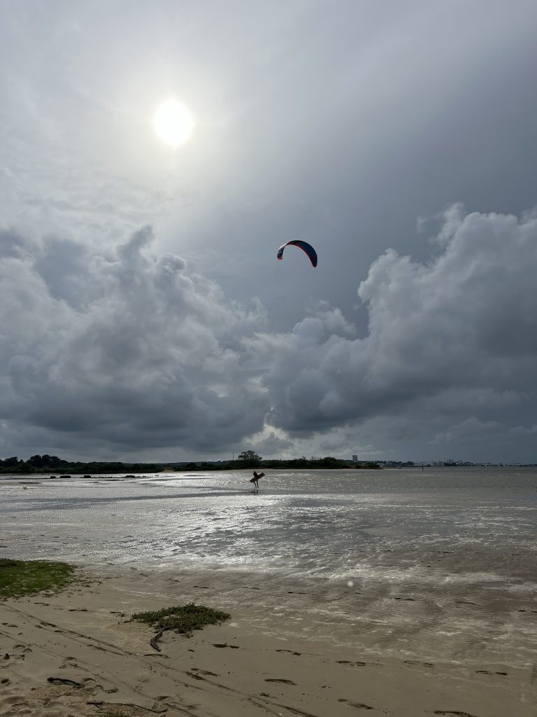 Viele Kiter 🪁 nutzen das auch und wir sehen die Bucht tatsächlich mal richtig mit Wasser 👍