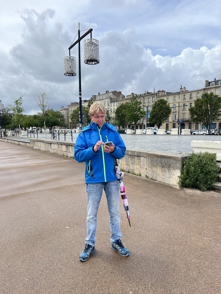 Nach einer sehr verregneten Nacht, ich brauche sogar Ohrstöpsel, wenn man ausgerechnet unter einem Baum 🌳 steht ist der Regen 🌧️ viel lauter und ungleichmäßig 🙈, machen wir uns gegen 13:00 Uhr mit Buss und Bahn!!! (ja, wirklich!!!) auf nach Bordeaux.
