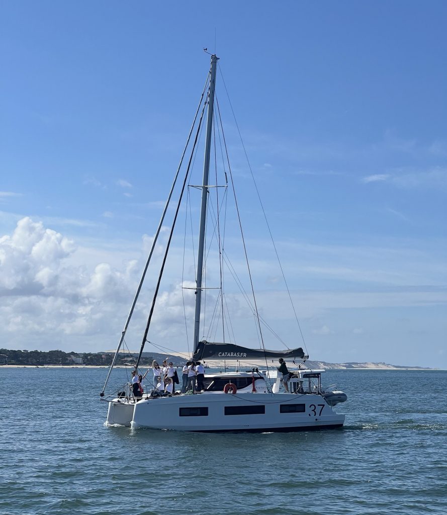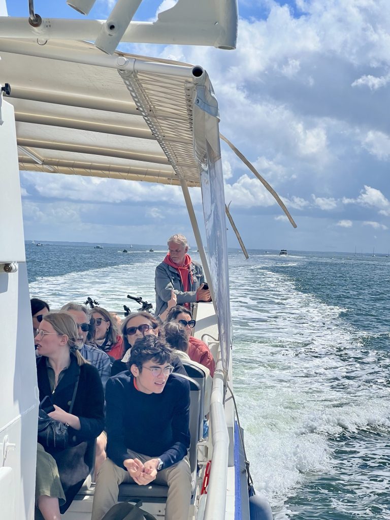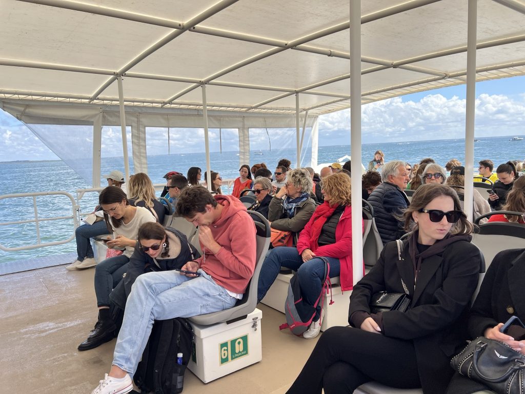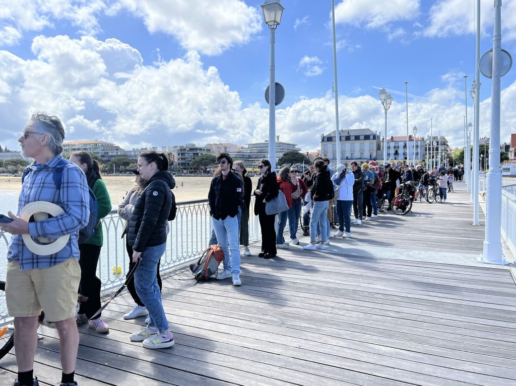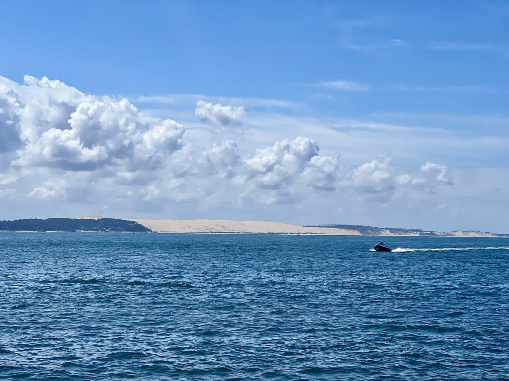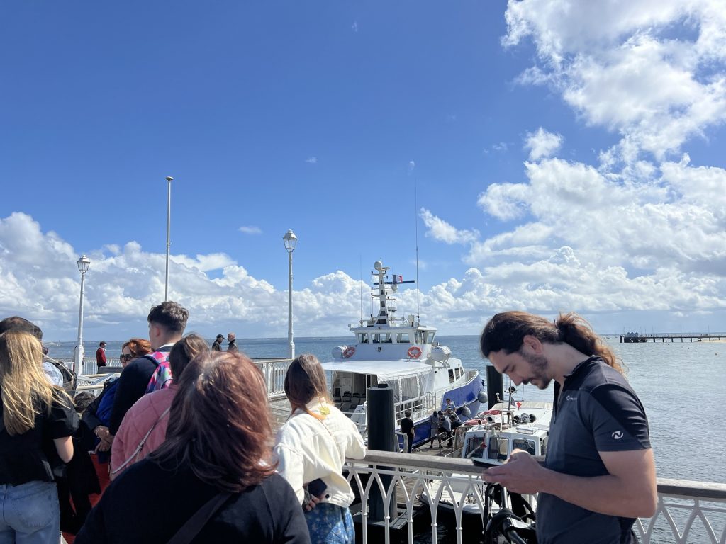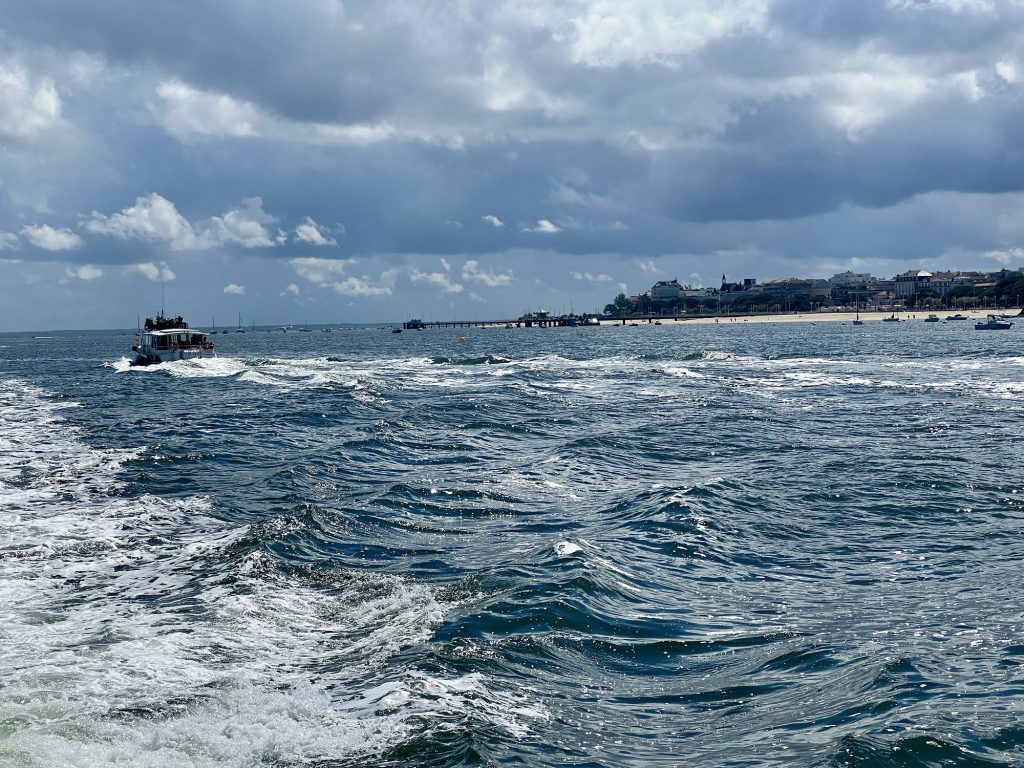 Wir kommen pünktlich in Arcachon an, nur um dann festzustellen, dass die Fähre ⛴️ schon voll ist und wir nur Tickets 🎟️ für die Nächste (12:00 Uhr) bekommen können. Da wir auch noch unsere Räder mitnehmen wollen, sollten wir uns aber trotz Tickets schonmal 30 min vorher anstellen, damit wir überhaupt eine Chance haben. Na das geht ja schonmal gut los, aber wir machen das Beste daraus – Kaffeepause 👍☕️☺️
