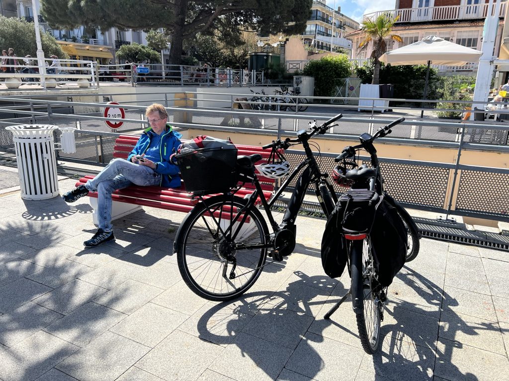 Wir tun es tatsächlich! Der Wecker ⏰ hat geklingelt und wir machen uns pünktlich gegen 10:15 Uhr mit gepackten Rädern auf den Weg zur Fähre nach Arcachon, die uns um 11:00 Uhr nach Cap Ferret bringen soll. Noch ein Vorher-Bild und schon geht es los.