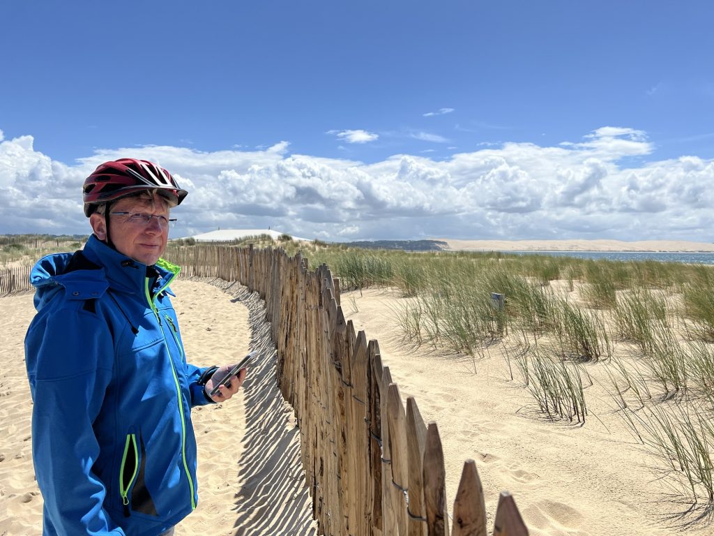 Und schon sind wir da und radeln erstmal zur Spitze um nochmal einen guten Blick auf die Dune du Pilat zu bekommen. Der Leuchtturm 🚨 ist unter Mittag geschlossen, wahrscheinlich nur zu unserem Besten 😉 Wir haben ja nach viel vor uns und haben mit dem Cap Ferret Besuch mal eben 10 km zu unserer Route hinzugefügt 🙈